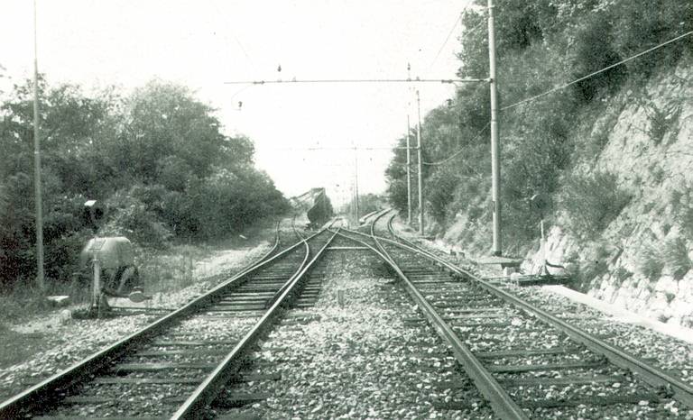 Valdibrana, vista sui binari di lanciamento e salvamento durante i lavori per l'ACEI. Foto Gabbani anni '80.