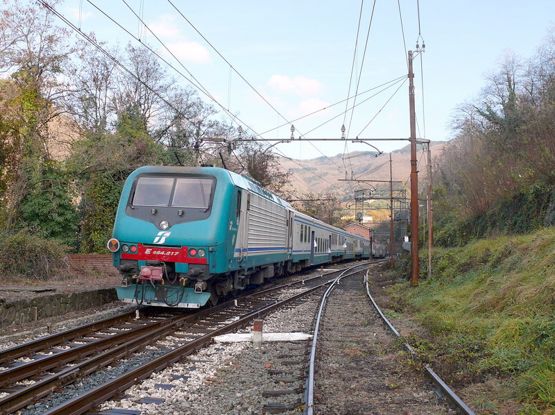Un treno misto verso Pistoia, ai tempi del trifase. Il binario a sinistra il lanciamento, gi in disuso in quei giorni.