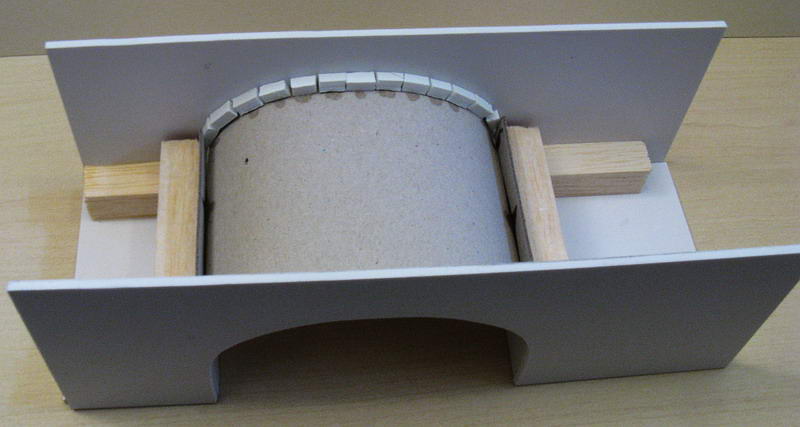 La volta del ponte è in cartone da 0,5 mm: tale spessore favorisce la flessibilità necessaria in questo caso.