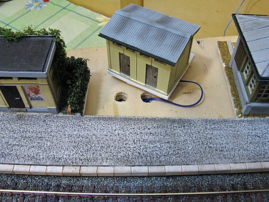 Nelle foto sotto, il magazzino commerciale viene usato come altoparlante per la diffusione di rumori d'ambiente e degli annunci di stazione. In totale vi sono cinque altoparlanti nascosti negli edifici. Il suono esce dalle aperture nella parte superiore dei muri del magazzino.